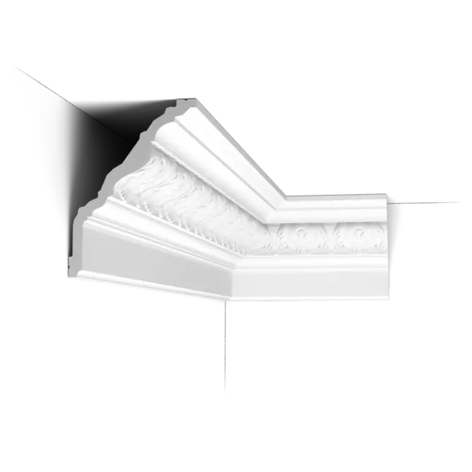 La corniche Orac C219 est une moulure haute, décorée de fins détails représentant des feuilles d'acanthe. Elle offre une finition majestueuse à vos murs et assure une complète transition entre votre mur et votre plafond.